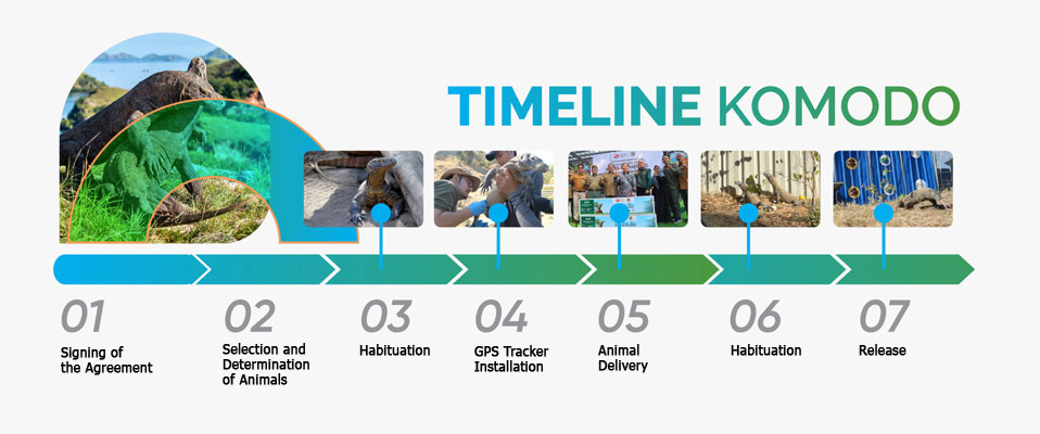 Coinciding with National Nature Conservation Day (HKAN) in October 2023, six juvenile Komodo dragons were returned to their natural habitat in the Wae Wuul Nature Reserve, West Manggarai, East Nusa Tenggara (NTT). These Komodo dragons underwent a selection process for physical excellence and a lengthy habituation process, ultimately determining their readiness to survive in the wild. GPS trackers were also installed on the six Komodo dragons for post-release monitoring, ensuring their continued adaptation to their natural habitat. This collaboration is a pentahelix collaboration between the government, the private sector, conservation institutions, and universities to protect the Komodo population in its natural habitat.