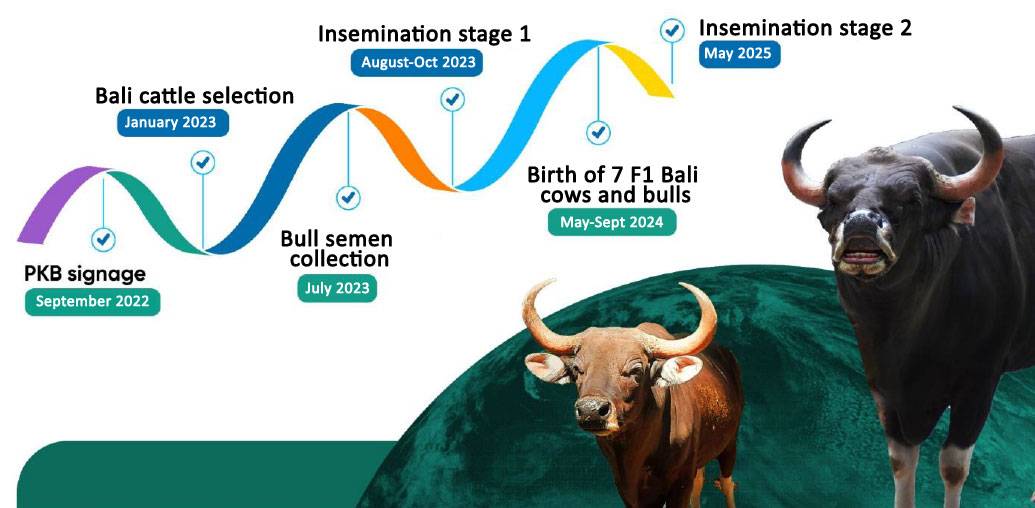 In the spirit of supporting national food security for meat supplies, while aligning with scientific developments and conservation efforts, PT Smelting has collaborated with the Conservation Institute on a bioprospecting program, "Javanese Banteng Insemination to Balinese Cattle," since 2022. This program was initiated out of concern for the endangered Javanese banteng and the deteriorating quality of Balinese cattle due to environmental factors and inbreeding. This innovation has restored good genes to improve the quality of cattle, increasing them to 1.5 times their normal size.