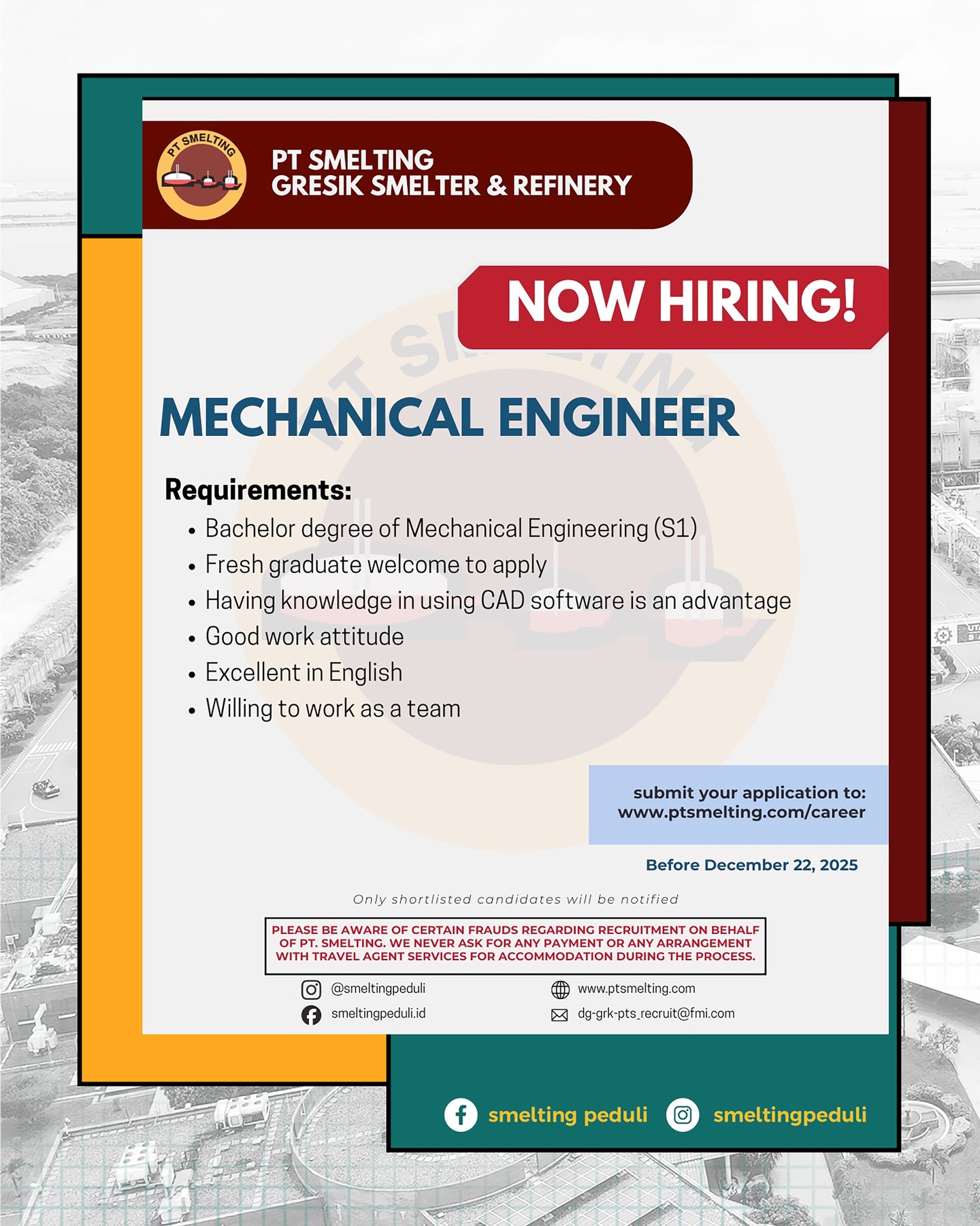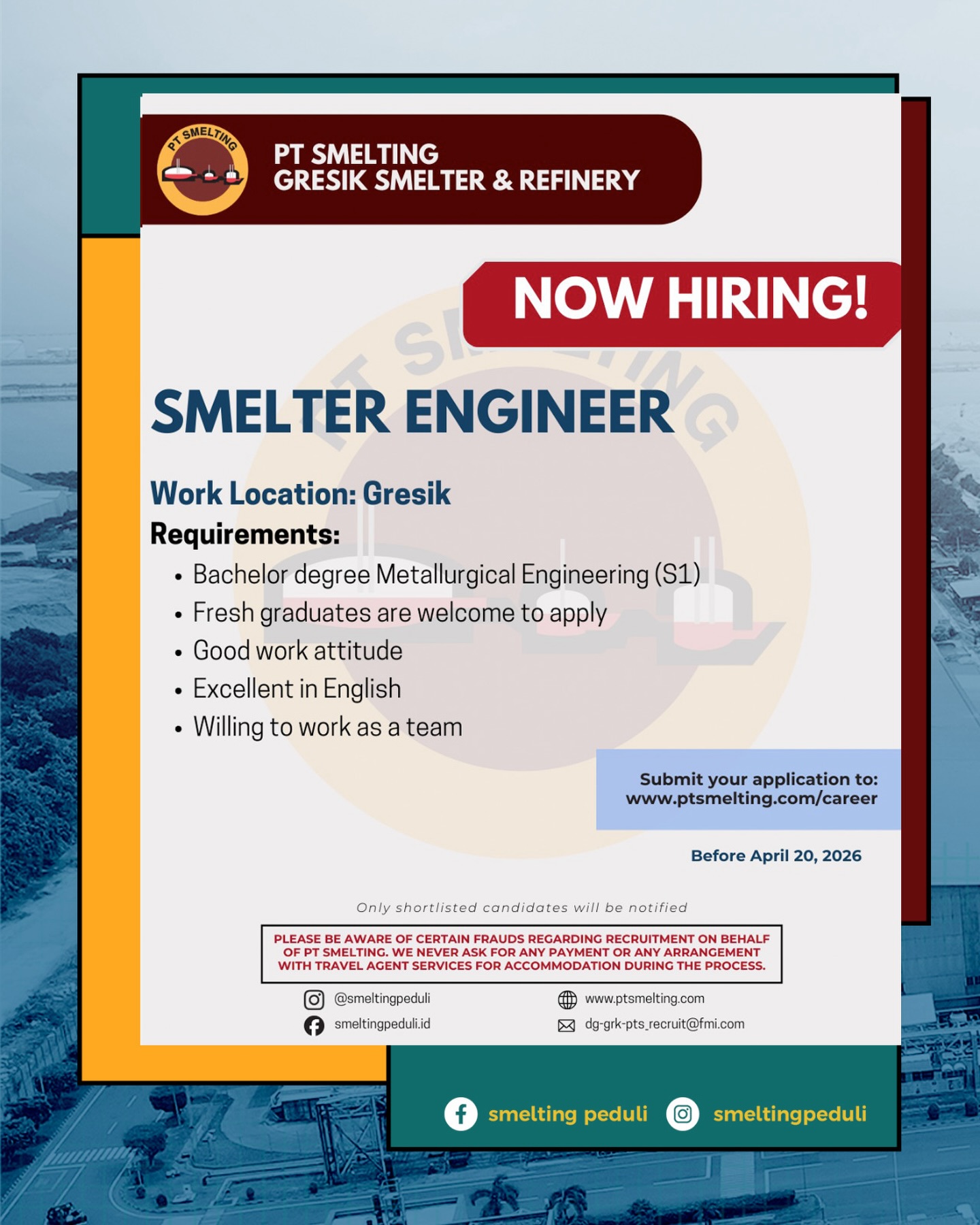 Establishment of PT Smelting began when PT Freeport Indonesia invites Mitsubishi Materials Corporation (MMC) to work together to build a copper smelter and refinery in Indonesia in 1994.