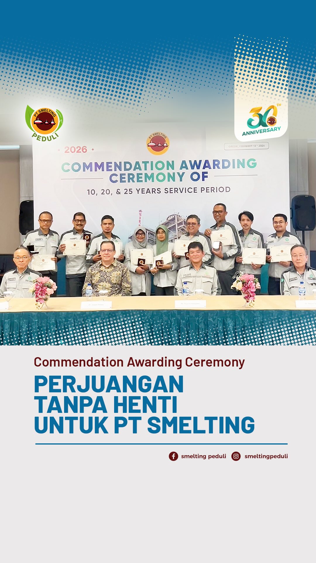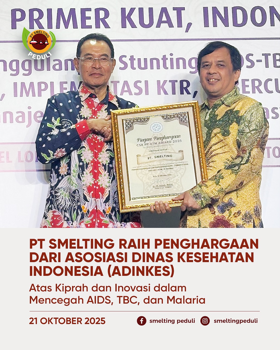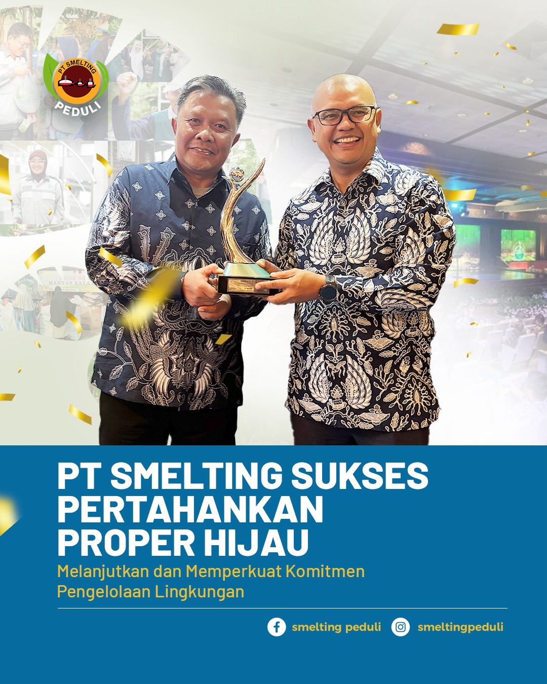 Various awards have been achieved by PT Smelting, such as: PROPER Green, Green Industry Award, National Energy Efficiency Awards.